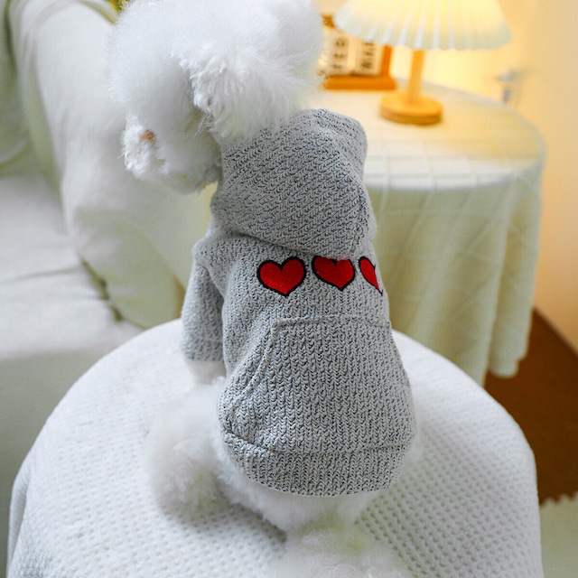 犬服 ハート刺繍ニットパーカー トップス ペット服 犬 おしゃれ かわいい 安い 小型犬 中型犬 大型犬