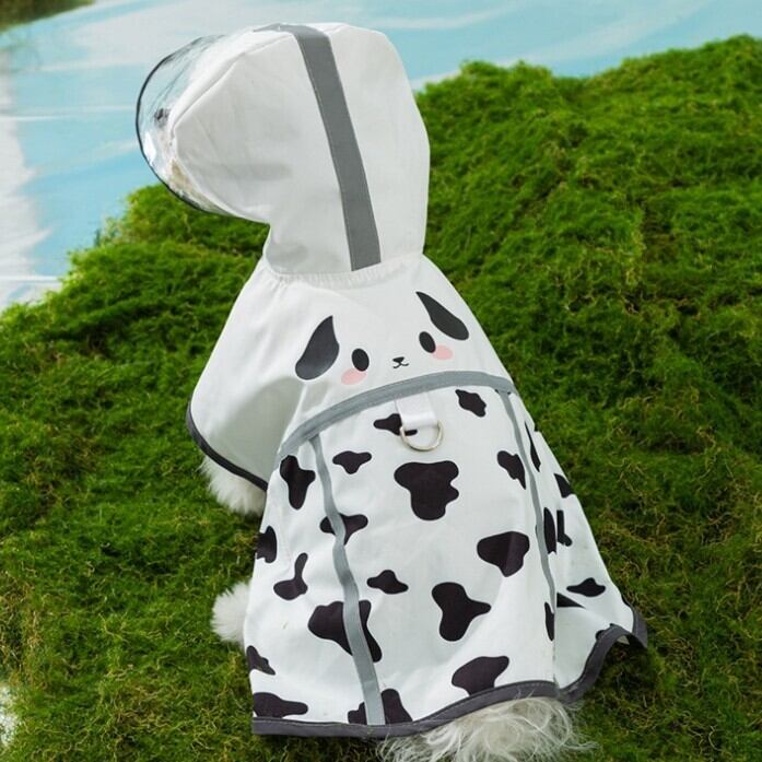 犬の顔がプリントされたユニークなデザインのレインコート。防水素材を使用しているため、雨の日でも愛犬をしっかり守ります。フード付きなので、頭までしっかりカバーできます。これで愛犬もストレスなく、楽しく過ごせること間違いなしです!