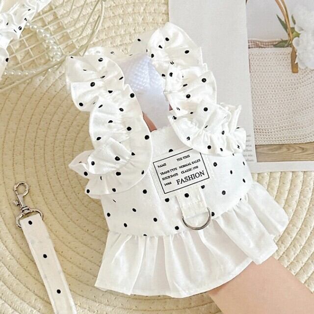ペット ペット用品 ドット柄フリルハーネス ソフトハーネス ファッションハーネス アクセサリー 犬用 犬猫兼用 着脱簡単 犬アイテム ペットアクセサリー おしゃれ プレゼント | Atelier ToYou