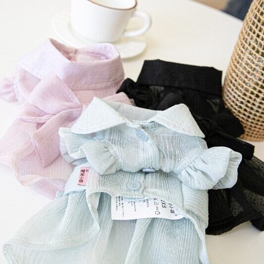涼しげなシースルーの素材がかわいいワンピース。ふんわりとしたフリルのディテールが華やかさを演出し、愛犬がより可愛く見えること間違いなし!お散歩やお出かけの際にも、周りの注目を集めること間違いなしです。