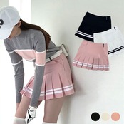 送料無料!ゴルフウェア ツーライン プリーツスカート 韓国ファッション ガーリー キュート 可愛い 上下セット セットアップ 春 夏 秋 ミニスカート ゴルフファッション スポーツウェア レディース | Atelier ToYou