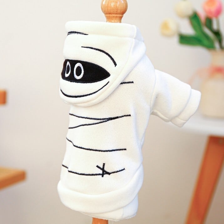 ハロウィンの時期に最適な可愛いコスプレアイテムです!ミイラ男のコスプレ気分を手軽に味わうことができ、普段着としても楽しめるカジュアルなデザインが魅力です。愛犬のおしゃれを楽しむための一着として、特別な日のお出かけにぴったりです!