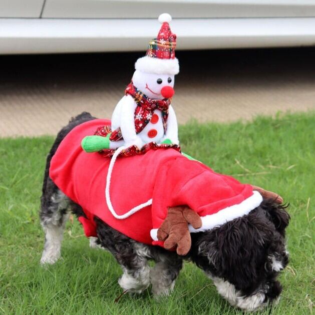 《クリスマスを特別に彩る!犬用クリスマスケープ!》背中にスノーマンとトナカイの角がついた可愛いデザインのこのマントは、クリスマスにぴったりのアイテムです。愛犬のおしゃれを引き立て、パーティーやお散歩、特別な写真撮影など、さまざまなシーンで大活躍します!