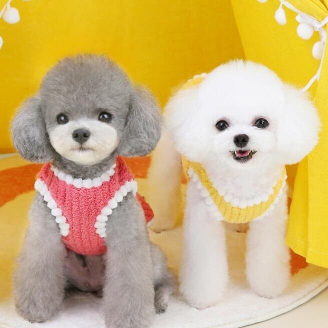 背中開きデザインで、着脱がスムーズで愛犬の動きも妨げません。かわいいポンポンふちどりが、おしゃれさをプラスします。裏起毛仕様で、寒い日も安心。暖かさをしっかりキープしながら、快適な着心地を実現しました。