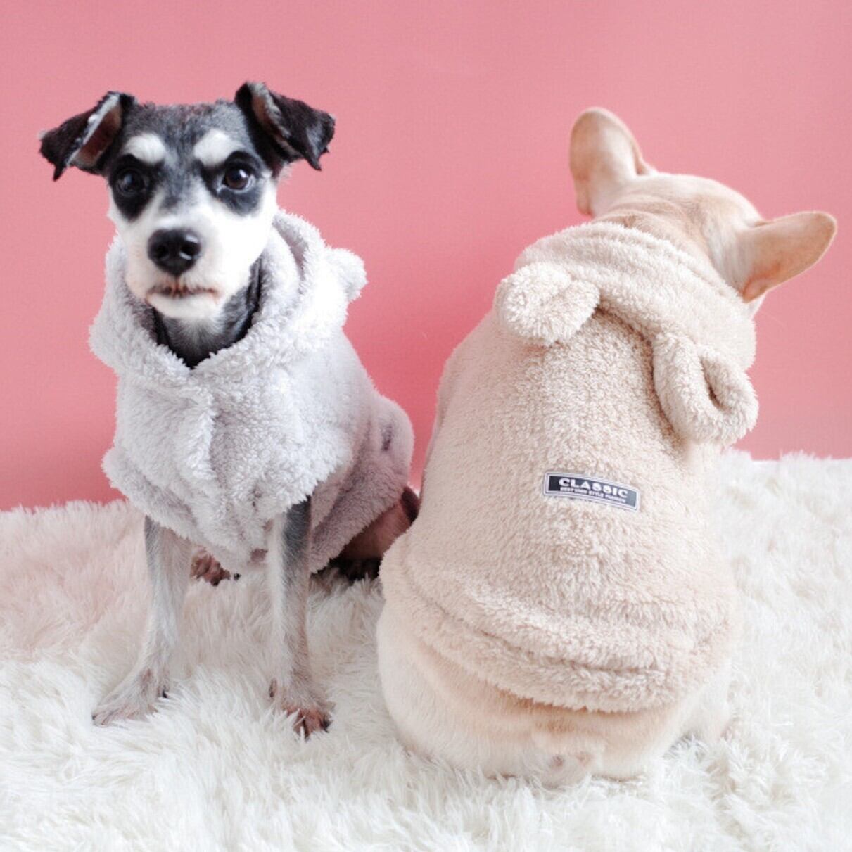 可愛いあなたの愛犬のためのドッグウェア、モフモフ耳付きフードパジャマが登場しました!寒い季節のお散歩やおうちでのリラックスタイムにぴったりのアイテムで、愛犬をより可愛らしく魅力的に演出します。柔らかな生地感が心地よく、愛犬の快適さを第一に考えたデザインが特徴です。