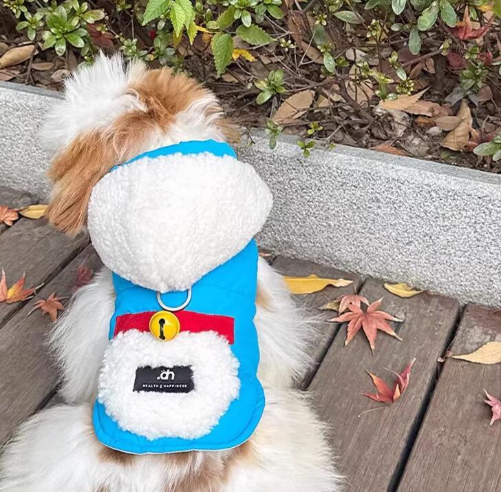 爽やかなブルーのカラーで、ドラえもんをイメージした可愛らしいデザインのダウンコートが登場!寒い冬にぴったりのあったか仕様で、愛犬をしっかりと守ります。おしゃれな見た目はもちろん、軽やかな着心地も実現しており、日常のお散歩から特別なお出かけまで、幅広いシーンで大活躍する一着です。