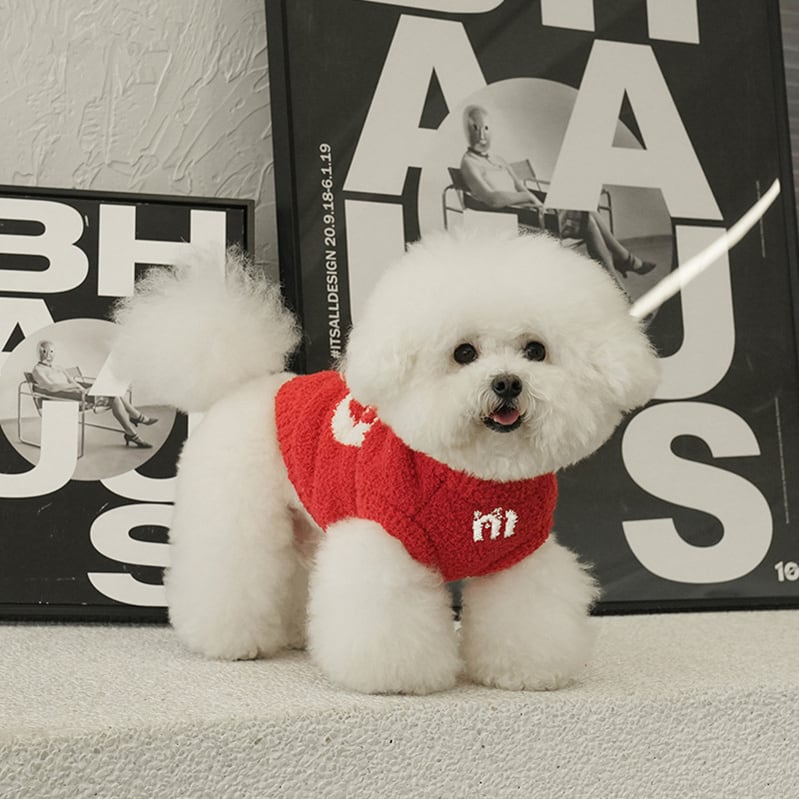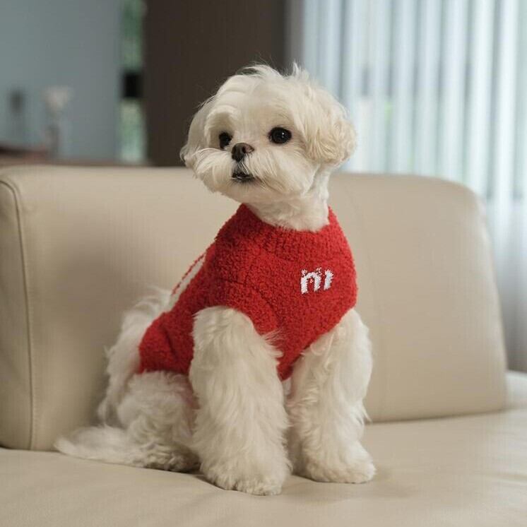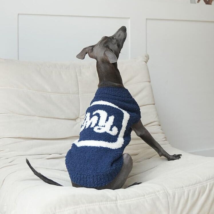 「My」の文字が編み込まれたもこもこニットのドッグウェアが新登場!柔らかなニット素材が愛犬を包み込み、温かさと快適さを提供します。おしゃれでかわいいデザインで、普段のお散歩や特別なお出かけに最適です。愛犬とのおそろいコーデも楽しみながら、素敵な時間を過ごしてみませんか?