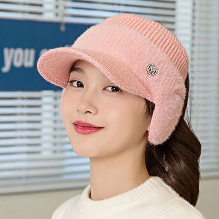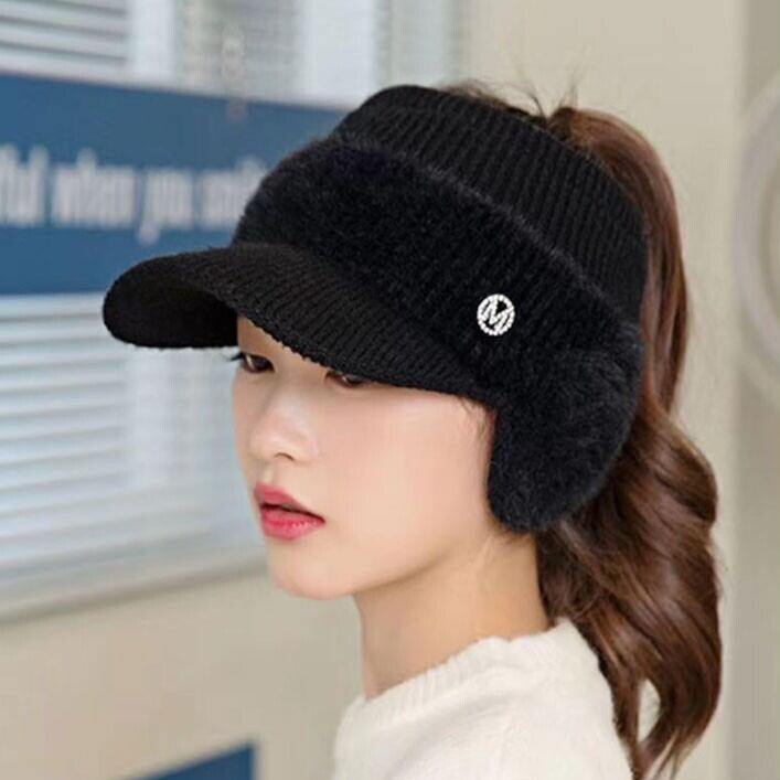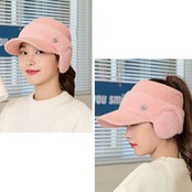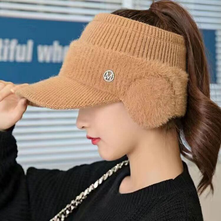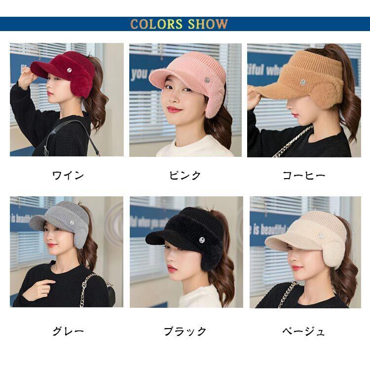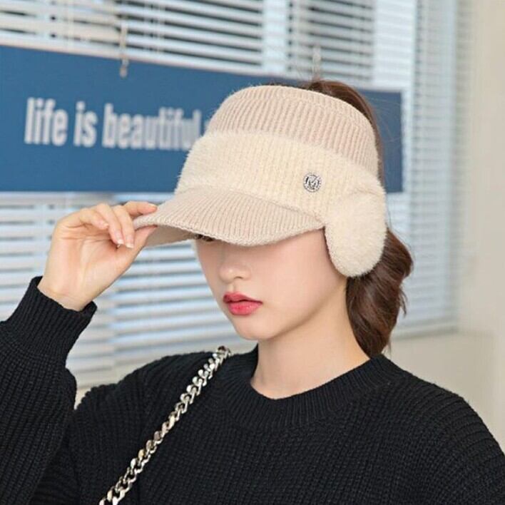 寒い季節もオシャレにウォーム感UP!耳あて付きのニットサンバイザー 耳当てはフワフワ感が気持ち良いふわふわ素材を使用。 広めのつばにリブ編みががわいい♪ 耳も隠れる幅広タイプで防寒対策に大活躍!! お散歩・ゴルフ・アウトドアにも最適なアイテムです!