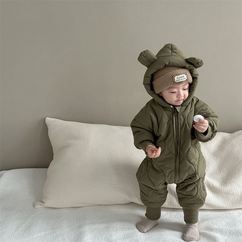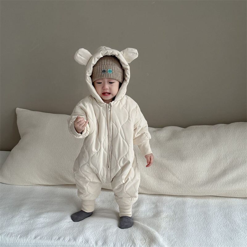 【すぐにお届け】ベビー服 裏起毛キルティング耳付きロンパース 秋冬 女の子 男の子 ベビー 新生児 キッズ 子供 トドラー ベビーウェア プレゼント 出産祝い
