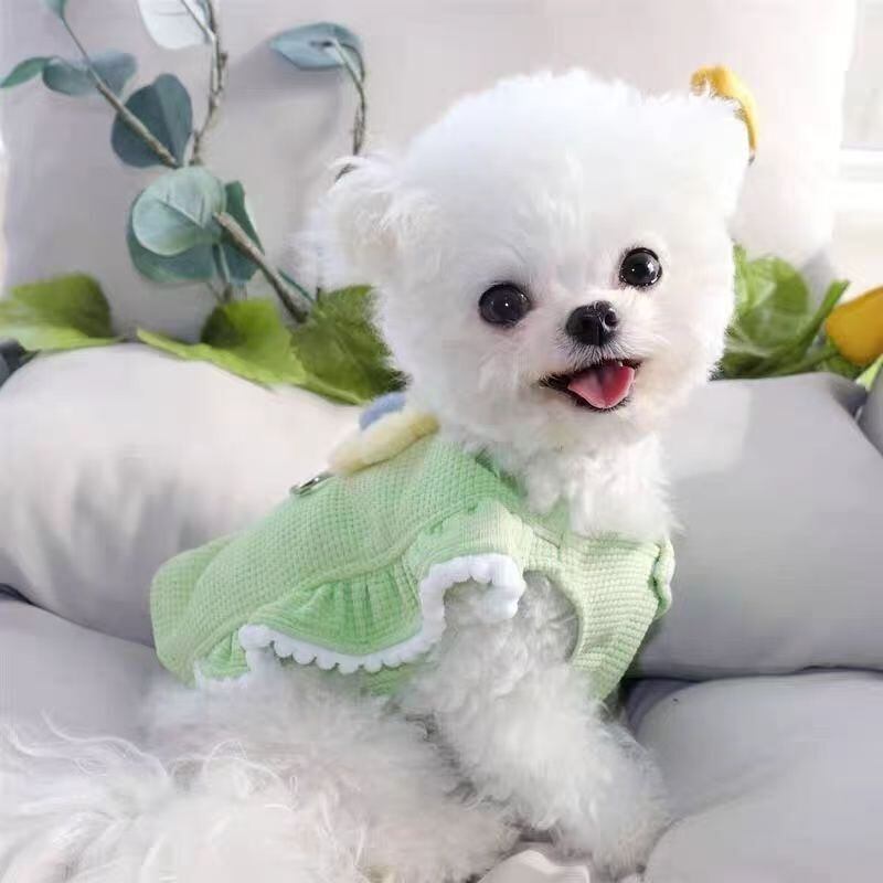おしゃれで可愛い、犬服 もこもこフラワーエンブレムデニムトップスが登場です!春らしいパステルカラーと、もこもこのフラワーエンブレムが特徴のこのアイテムは、あなたの愛犬を一層魅力的に演出します。フリル袖が揺れるデザインで、どんなお出かけシーンにもぴったりです。