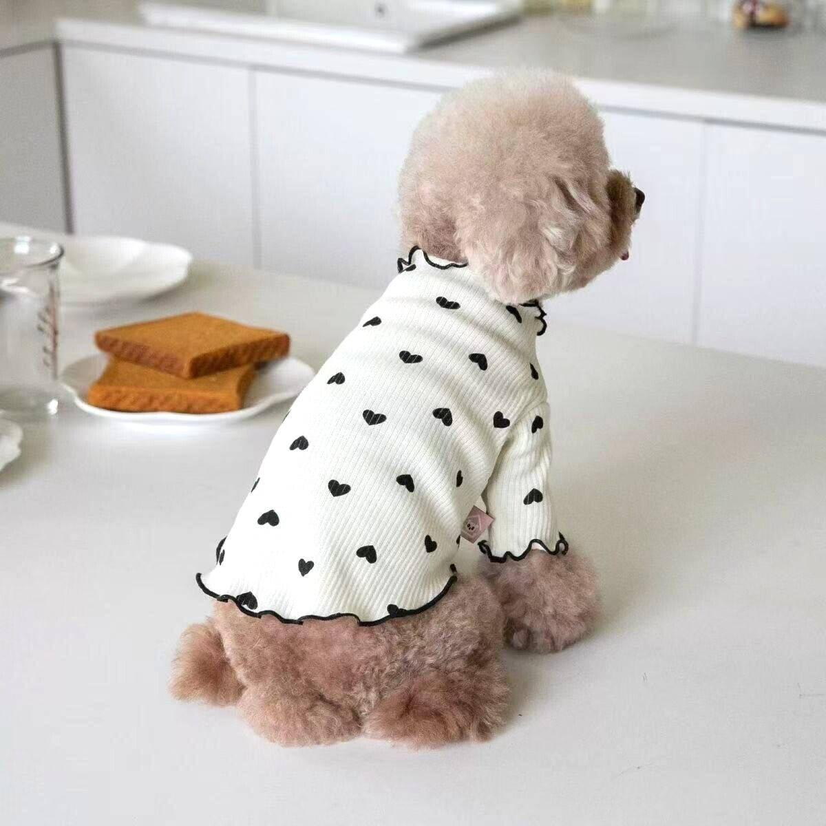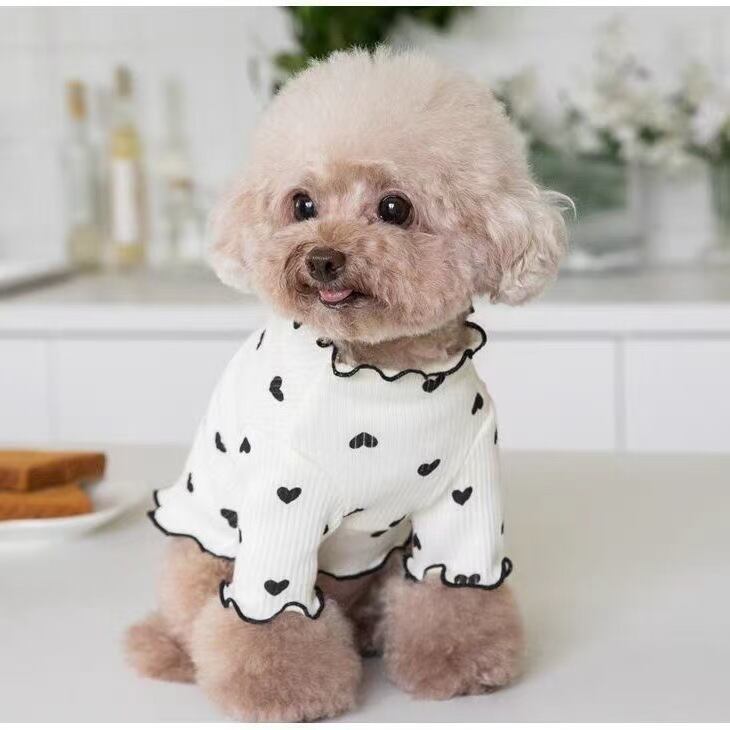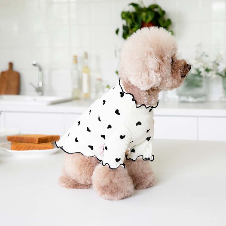 春の訪れを感じさせるハート柄が愛犬の魅力を引き立て、シンプルながらもキュートなデザインが特徴です。重ね着インナーとしても使えるので、さまざまなおしゃれシーンに対応できるアイテムです。トイプードルや小型犬、中型犬、大型犬にぴったりなサイズ展開で、愛犬の春のコーディネートに最適な一枚です!