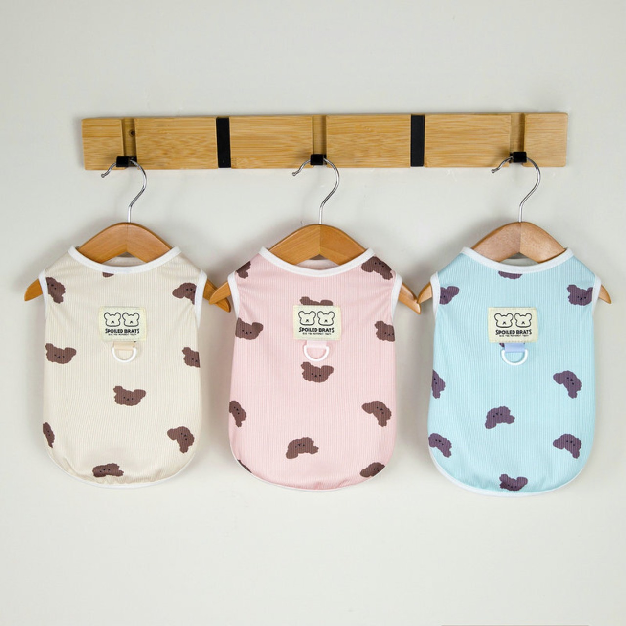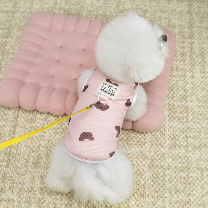 春にぴったりな、クマのプリントが印象的な袖なしベストが登場しました!軽やかな春らしいカラーに、おしゃれなデザインで、愛犬の魅力も一層引き立てます。かぶるだけのシンプルな着脱方式なので、お散歩やお出かけの準備もスムーズです。また、リード金具付きなので、安心してお出かけが楽しめます。