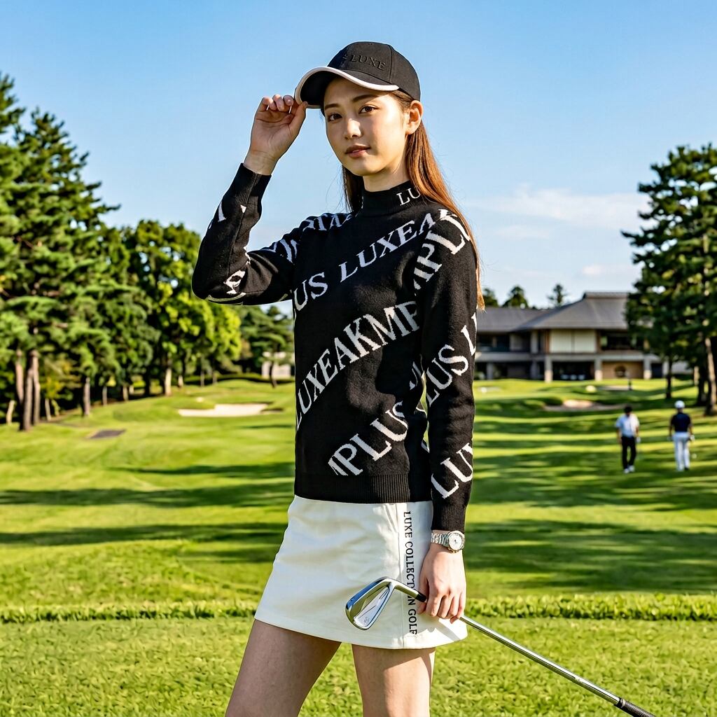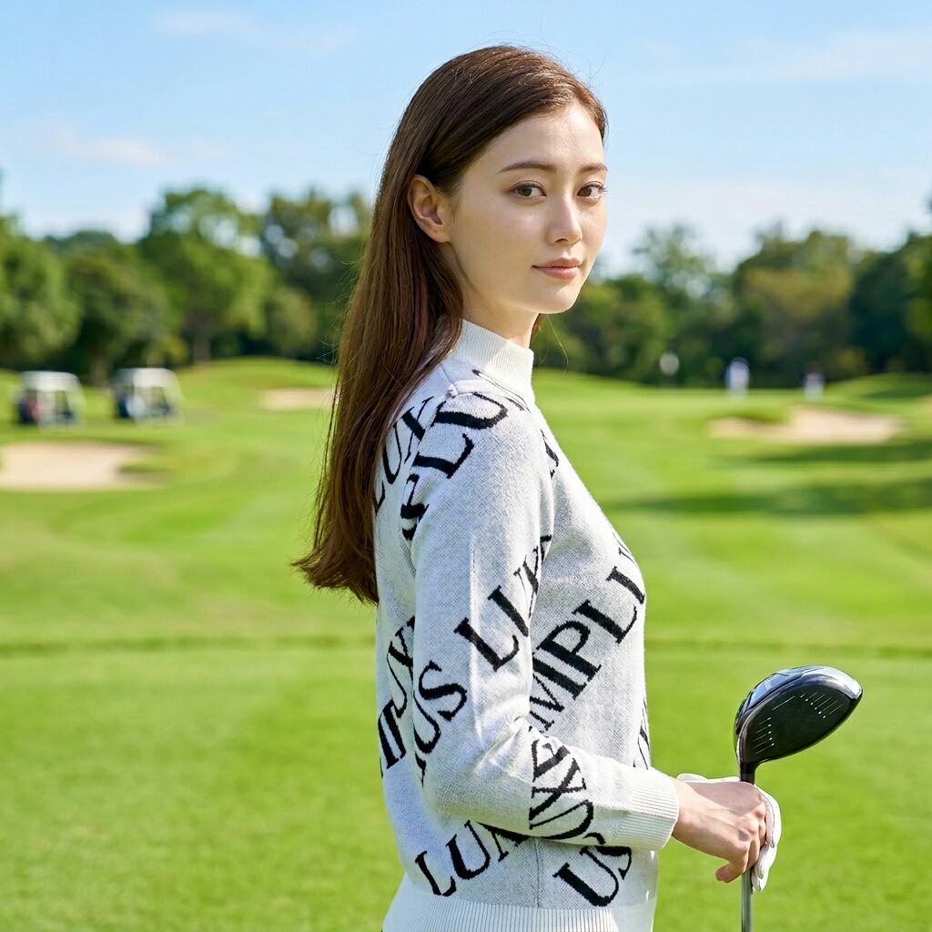 斜めにロゴが施されたモックネックのニットトップスが登場しました!春の心地よい風や秋のさわやかな空気の中で、洗練されたスタイルを楽しむことができるアイテムです。ゴルフのプレー時はもちろん、カジュアルなお出かけにもぴったりな一品です。