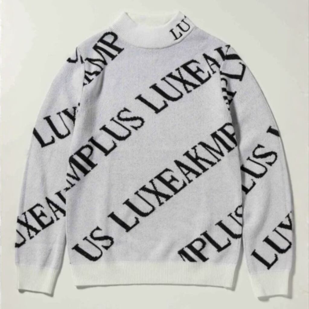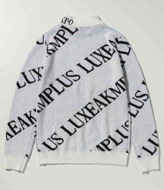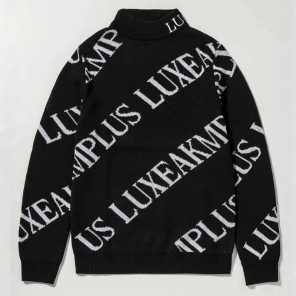 送料無料!ゴルフ ゴルフウェア LUXEAKMPLUS リュクスエイケイエムプラス 総柄ロゴモックネックニット トップス レディース 春服 秋服
