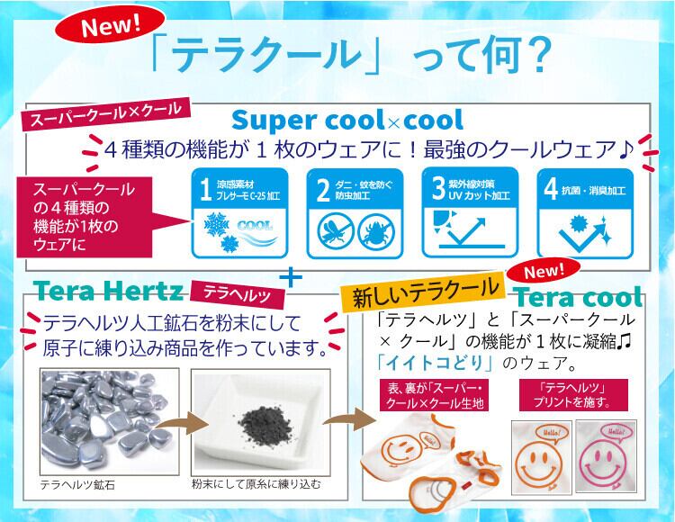 新しい「テラクール」は背中面、表面ともに「スーパークール×クール」+テラヘルツ鉱石の粉末を直接プリントしてコーティング。
