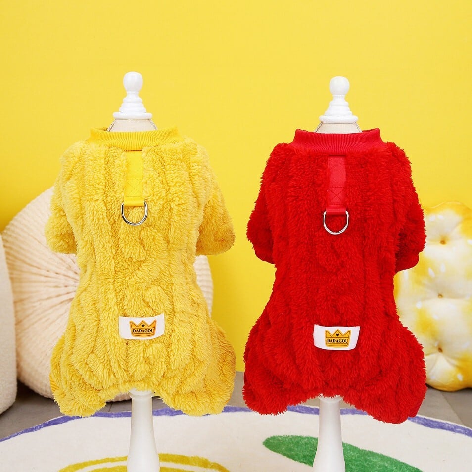 暖かさと可愛さを兼ね備えた冬のアイテム、もこもこツイストベルベットつなぎ。愛犬のために最適なペット服です。ツイストベルベット素材で、触り心地もばっちり。冷たい季節にぴったりな防寒性能を発揮してくれます。