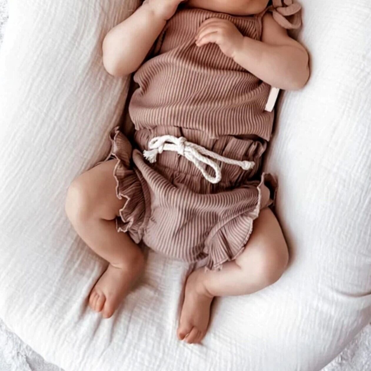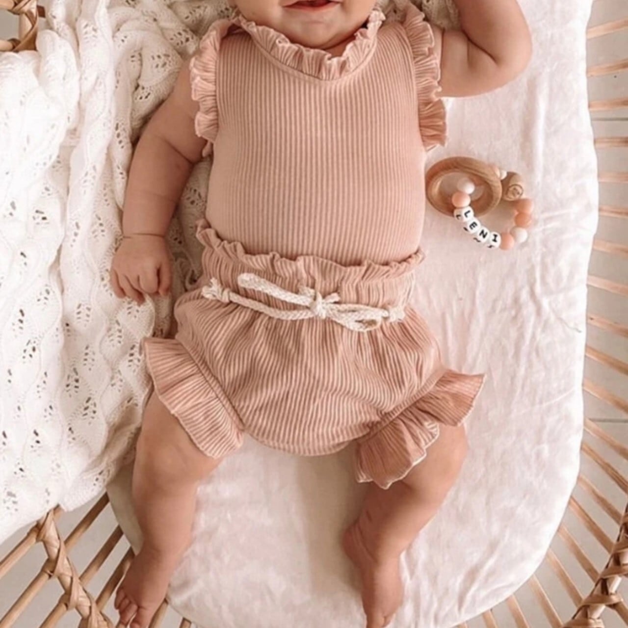ベビー服 フリルリブロンパース セットアップ ベビー 新生児 キッズ 子供 トドラー 春 夏 ベビーウェア プレゼント 出産祝い 66cm 73cm 80cm 90cm