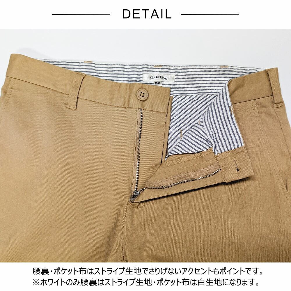 伸縮性のあるツイル生地を採用。綿素材で肌触りが良いだけでなく、 程よい肉感がありながらも、ストレッチ性があるので、 動きやすく快適に着用できます。