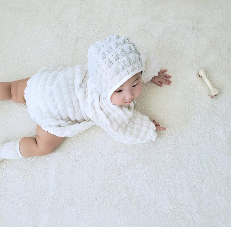 ふわふわポップコーン素材のロンパースと可愛らしいフード帽子のセットが登場しました!赤ちゃんの笑顔が倍増するようなキュートなデザインで、お子様も喜んでくれること間違いなしです。この秋、思い出に残るかわいいベビー服セットで、あなたのお子様を包み込んであげてください。