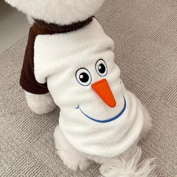 おしゃれでかわいいペット服、フェイスデザインのトップスが登場!秋冬にぴったりのもこもこした素材で、愛犬を一層魅力的に演出します。アナ雪のオラフの顔がデザインされており、見ているだけで心が温まるアイテムです!