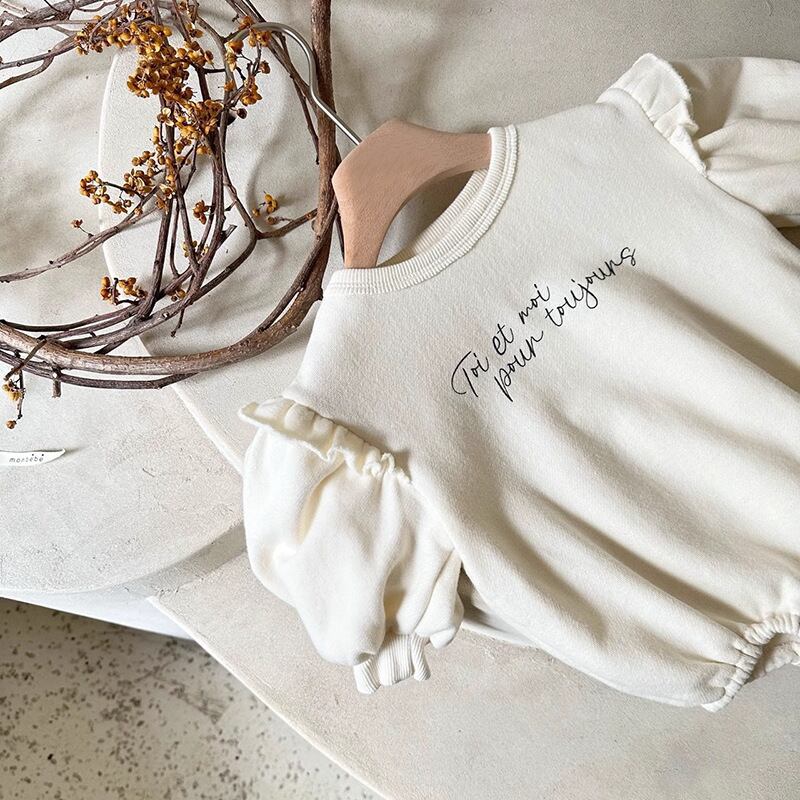 可愛らしい袖フリルデザインのパーカーロンパースです!カジュアルながらキュートな印象を与えるこのロンパースは、女の子が嬉しいデザイン。動きやすさを考慮したデザインで、安心してお出かけやお家遊びを楽しむことができます。